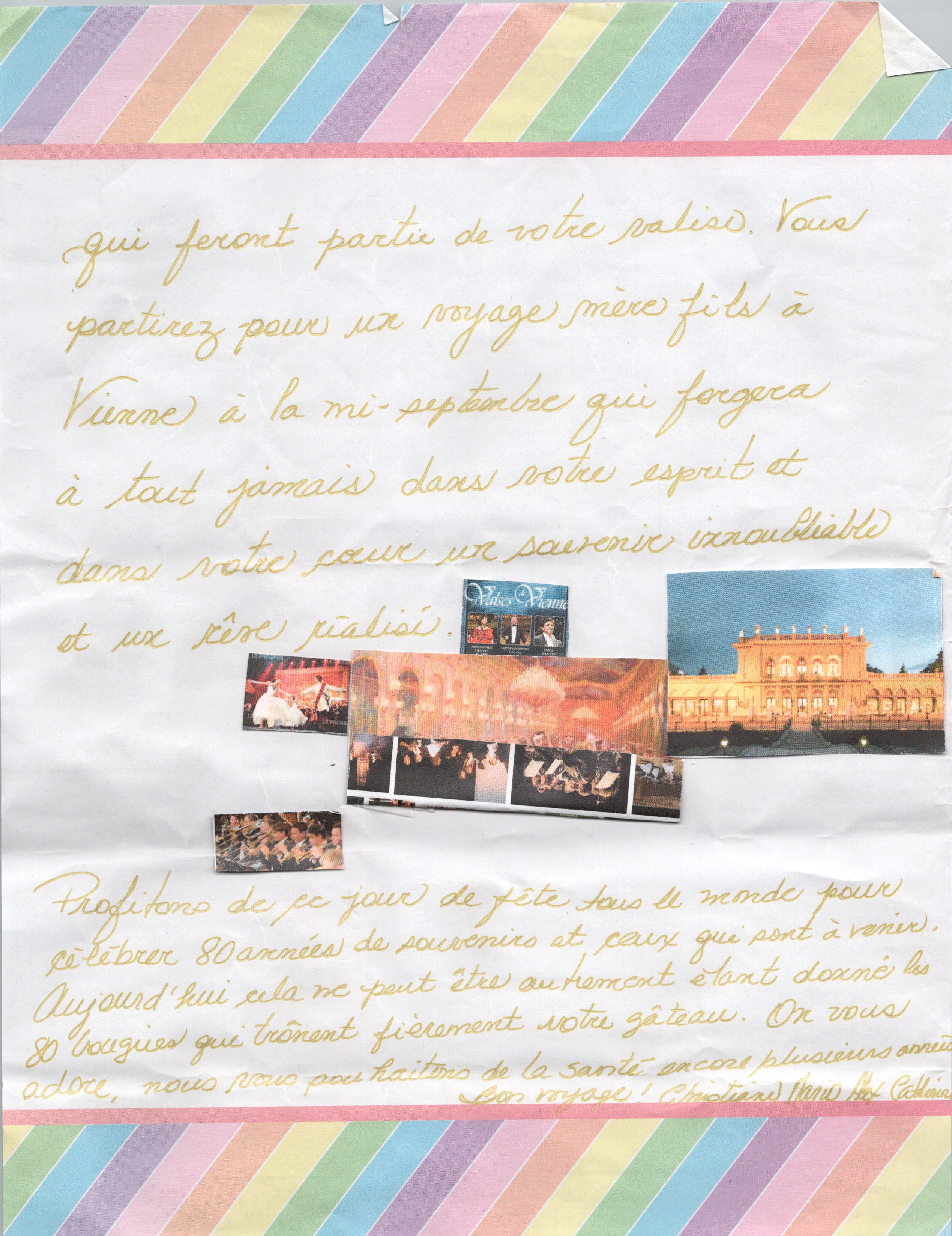 Aujourd'hui, c'est avec une grande tristesse que nous lui disons au revoir, mais aussi avec une immense reconnaissance pour tout ce qu'elle a été pour nous. Elle a marqué nos vies de son amour inconditionnel, et nous ne l'oublierons jamais. Sa mémoire vivra à travers tout ce qu'elle a fait pour nous, et à travers nos yeux.